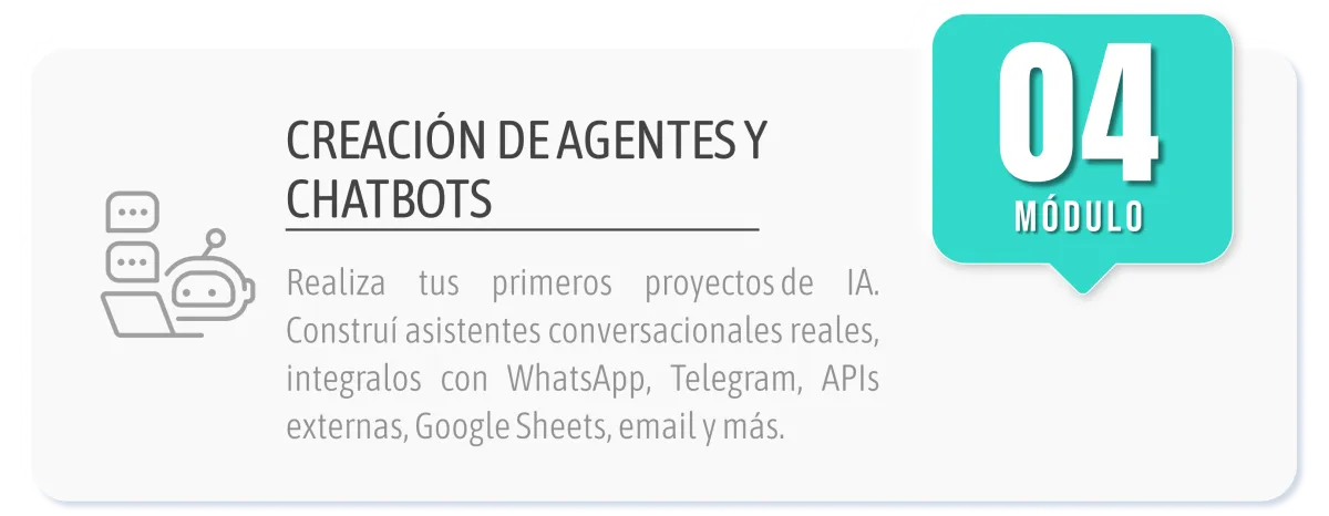 Este es un programa diseñado para quienes desean transformar realmente a sus empresas, aprendiendo a implementar chatbots, asistentes inteligentes y automatizaciones. ¿El objetivo? Liberar tiempo, reducir costos y mejorar la calidad de lo que haces.